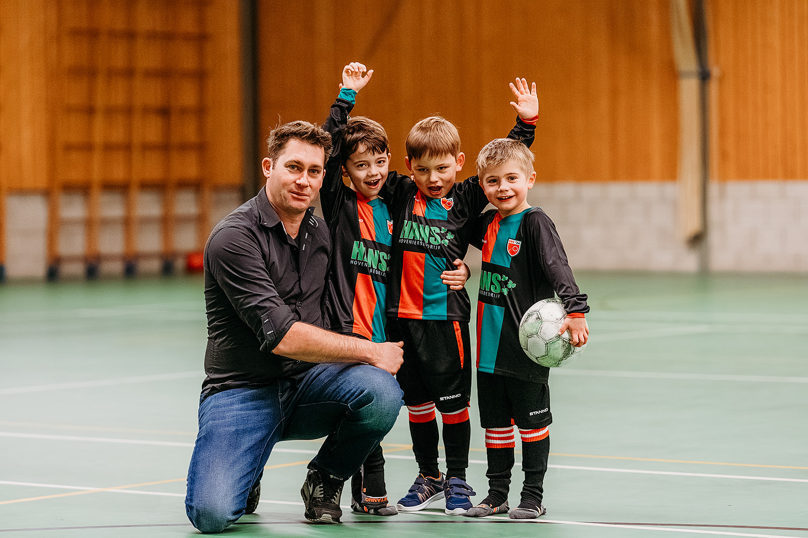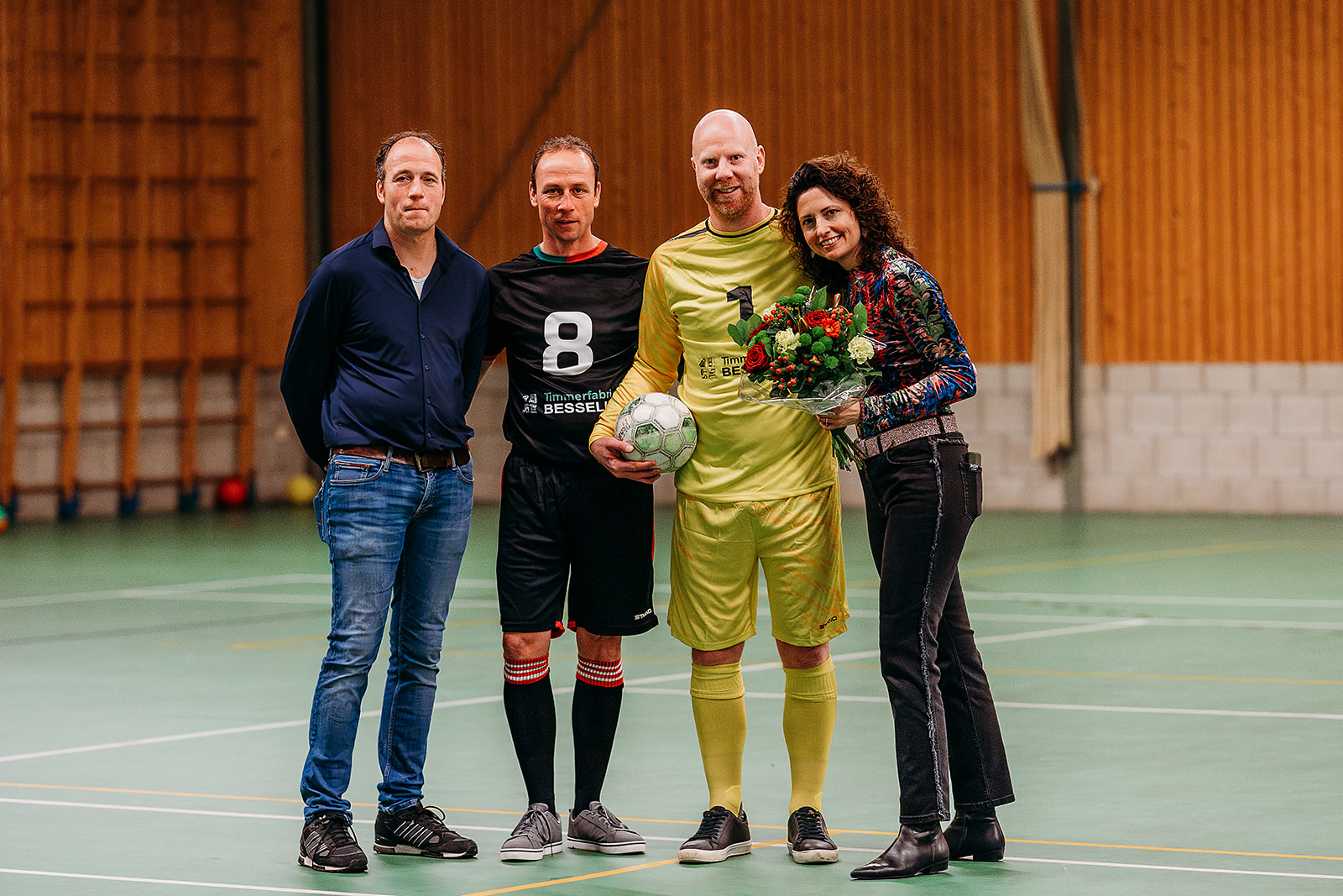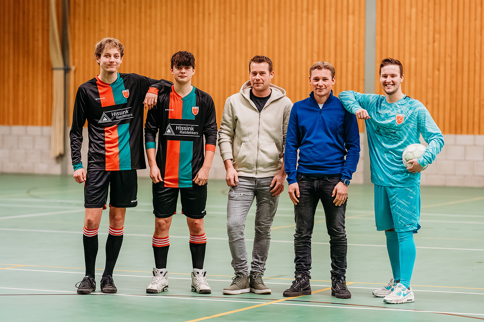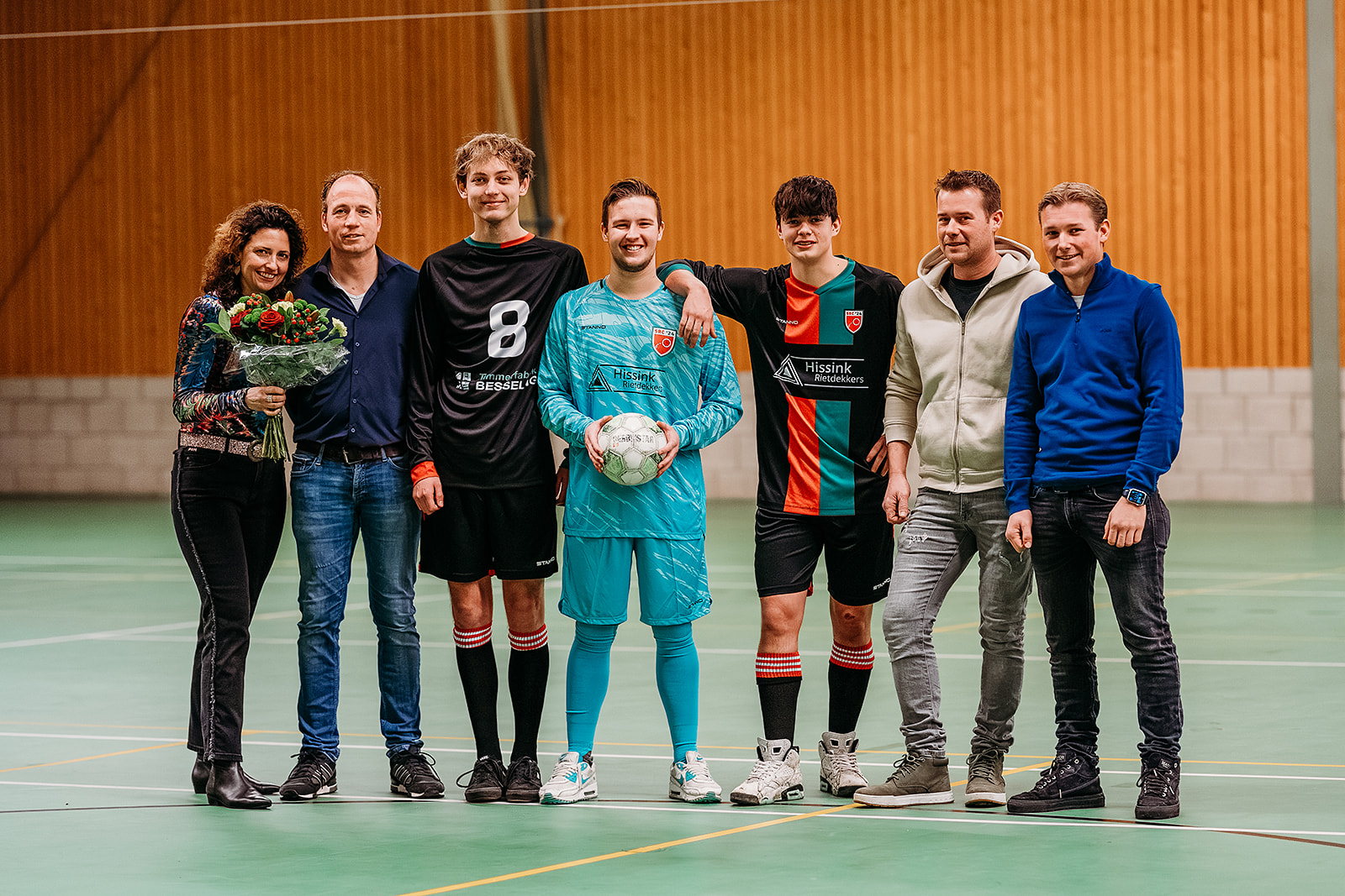 Vóór de officiële onthulling werden eerst alle sponsoren van alle teams naar voren geroepen. Deze werden door de sponsorcommissie in het zonnetje gezet en bedankt voor het feit dat men met hun bedrijf, shirtsponsor van 1 van de 14 teams wilde zijn. De sponsoren bleven bij elkaar staan en de prijswinnaars, Henri Eggink en Sam Weenk werden naar voren geroepen. Sam was echter afwezig (hij moest werken), dus werd zijn vriendin Marije Rietman naar voren geroepen. De twee heren hadden het tenue bedacht en het ontwerp ingediend dat uiteindelijk ook door de leden werd gekozen. Beiden werden ze verrast met een gepersonaliseerd nieuw shirt. Twee volledig ingepakte paspoppen werden onder luid gejuich uitgepakt door Henri en Marije. Één paspop had het nieuwe tenue aan waarin ieder team gaat spelen en de andere paspop had het reserve tenue aan dat gebruikt kan worden door de senioren teams. Nadat vele nieuwsgierigen het tenue hadden bewonderd, gingen alle sponsoren naar de sporthal. Daar werd elke sponsor gefotografeerd met een speler en een keeper uit het team dat men sponsort. Josine Breukink maakte de foto’s die straks vast en zeker een mooie herinnering vormen voor de sponsoren.